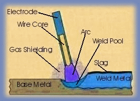 Shielded metal arc welding (SMAW), also known as manual metal arc (MMA) welding or informally as stick welding, is a manual arc welding process that uses a consumable electrode coated in flux to lay the weld. An electric current, in the form of either alternating current or direct current from a welding power supply, is used to form an electric arc between the electrode and the metals to be joined. As the weld is laid, the flux coating of the electrode disintegrates, giving off vapors that serve as a shielding gas and providing a layer of slag, both of which protect the weld area from atmospheric contamination.